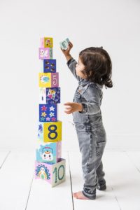 De stapelblokken van Petit Monkey zijn maar liefst 89 cm hoog, zodra je ze allemaal opelkaar zet. Een leuk spel waar kindjes vanaf 1 jaar mee kunnen spelen. De stapelblokken zijn ook vrolijk gekleurd met de tekeningen van Helen Dardik. In totaal zijn er 10 blokken, waarbij de grootste 13.5×13.5 cm is en de kleinste 4.5cm in het vierkant. Ze worden verpakt in een mooie doosjes van 15 x15 x15 cm met een handig koortje eraan.